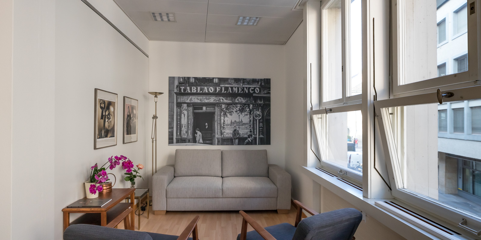 - Helle Räumlichkeiten, zwei Fensterfronten zur Vorstadt mit Blick auf das Schwabentor